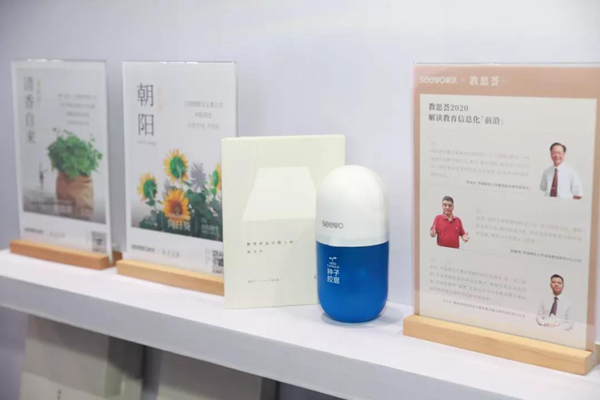 在本次展會上,希沃文創產品更是讓人耳目一新,擁有著希沃“智慧藍”外殼的種子膠囊講述著希沃人的專注與探索精神。希沃人期望:將成長、希望、可能性濃縮于膠囊里,等待著迸發的成長之美。而在做《教思薈》的道路上,我們也制作了與“教育同行”帆布包,希望它如希沃一般,時刻陪伴著每一個熱愛教育的人。即將面世的“本來”筆記本,寓意著還原生活本來的樣子。