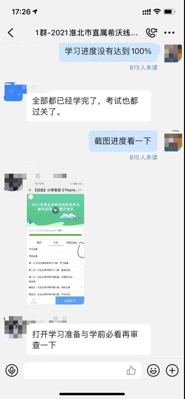 基于淮北市教師信息化水平不均的問題,希沃公司積極進行線上課程開發,為淮北市教師設定了專屬課程內容,全面覆蓋初級、中級、高級各個階段,每階段后都有單元小測試,旨在保證教師學習后的效果并落地執行應用。希沃工作人員建立了12個區域性線上交流群全程陪伴督學,便于及時答疑提高教師學習積極性。隨后,越來越多的老師們給我們分享獲得結業證書的喜悅。