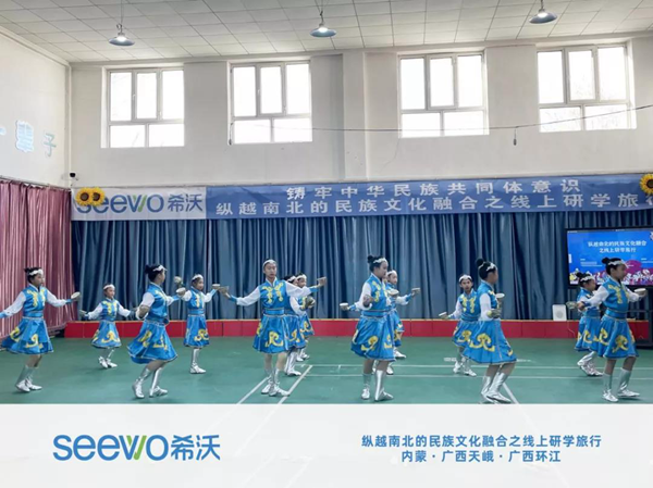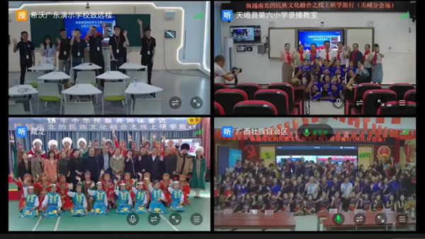 據(jù)介紹,活動(dòng)現(xiàn)場(chǎng),內(nèi)蒙古阿龍山小學(xué)的蒙古族和鄂溫克族、廣西環(huán)江縣的毛南族、天峨縣的壯族一起在線上共同參與,他們盡情表演精彩紛呈的民族文化歌舞,展示民族文化多元魅力。
