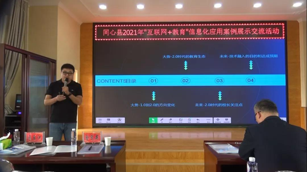 空山新雨后,天氣晚來秋。一場思維交流,智慧碰撞的盛宴在濃郁的秋色中拉開序幕。為進一步促進寧夏同心縣的信息技術與教育教學的深度融合,交流“互聯網+教育”背景下智慧校園建設的經驗,加快推動教育技術在教學中的應用推廣。同心縣在2021年“互聯網+教育”