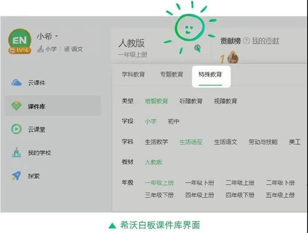 為更全面地賦能教育新基建,2021年,希沃備授課一體化軟件希沃白板針對(duì)特殊教育開放資源共享入口,邀請(qǐng)全國(guó)特教老師共同參與課件庫(kù)的打造,為特殊教育的孩子共創(chuàng)更生動(dòng)、易吸收的信息化課堂,填補(bǔ)特殊教育信息化資源缺口。