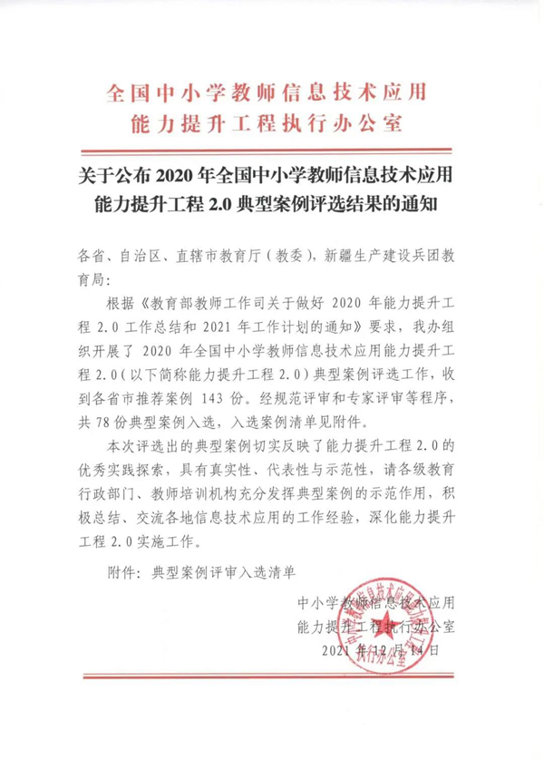 2020年全國中小學教師信息技術應用能力提升工程2.0典型案例評選工作,于2021年12月圓滿落下帷幕。這是由全國中小學教師信息技術應用能力提升工程執行辦公室主辦的一場全國性評選,經過層層選拔,78份典型案例得以最終入選。福建省浦城縣第三中學,憑借團隊力量,依托希沃軟硬件支撐,在143份報送案例中脫穎而出,成為全國各省市教育教學相關人員學習的優質范本。