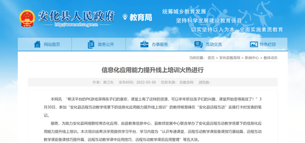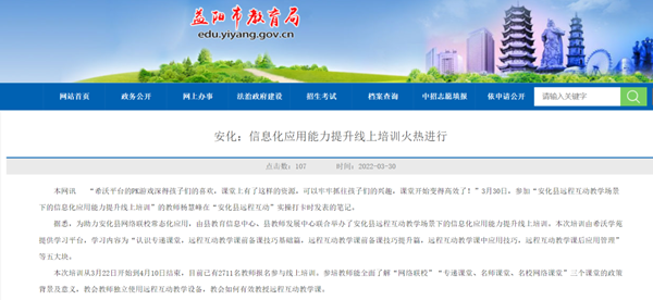 3月30日,湖南省益陽市安化縣教育信息中心、縣教師發展中心與希沃聯合舉辦了“安化縣遠程互動教學場景下的信息化應用能力提升”線上培訓。自3月22日啟動線上培訓,已有超2711名教師報名參與,在獲得參與教師高度認可的同時,培訓亦引起了益陽市教育局的重視。