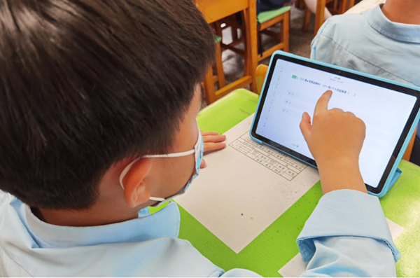 復賽環節借助希沃易課堂活動進一步考察學生心算能力,在規定時間內學生通過平板終端以最快的速度完成口算習題,并以年級前10%的名額進入最后的決賽環節。
