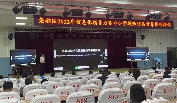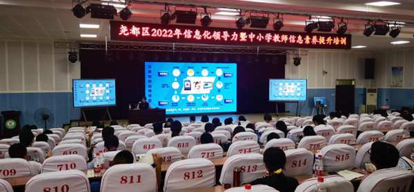 隨后,堯都區教科局電化教育館王劍對2021年至2022年期間堯都區教師信息素養提升進行了匯報總結,并提到通過希沃學苑線上課組,全區5200余名教師參加培訓,通過率達到97%以上。