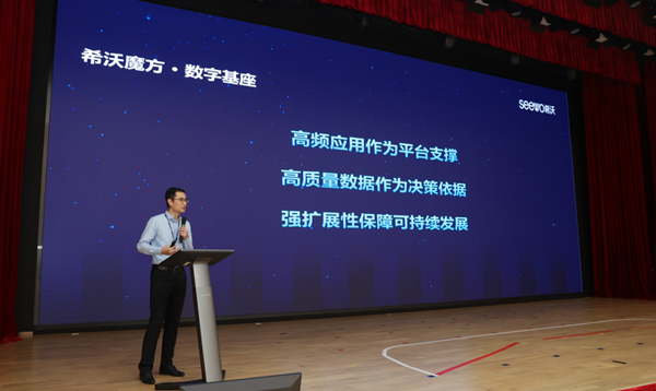 簽約當日,希沃、威士丹利等十余家企業在現場展現了其在教育信息化、數字化領域場景應用的最新成果,對意向簽約的項目做了詳盡的推介。其中,視源股份未來教育集團(希沃)教育商用顯示事業部總經理黃柏林,為來訪的校方代表及貴賓們重點介紹了希沃全新的統一服務平臺“希沃魔方·數字基座”,引發多方關注。