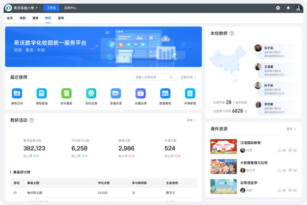 黃柏林介紹道,希沃魔方·數字基座作為一款綜合管理應用解決方案,能夠有效助力管理者統一管理、融合各類教育基礎信息,高校解決如教學教研、德育管理、電教管理等多個業務系統之間數據混亂的現狀,實現數據融合管理,形成數據看板。這個專為校長、教務主任、德育主任等各級管理層提供的數據駕駛艙,將有效地輔助管理者決策支撐,為組織的數字化轉型升級賦能。