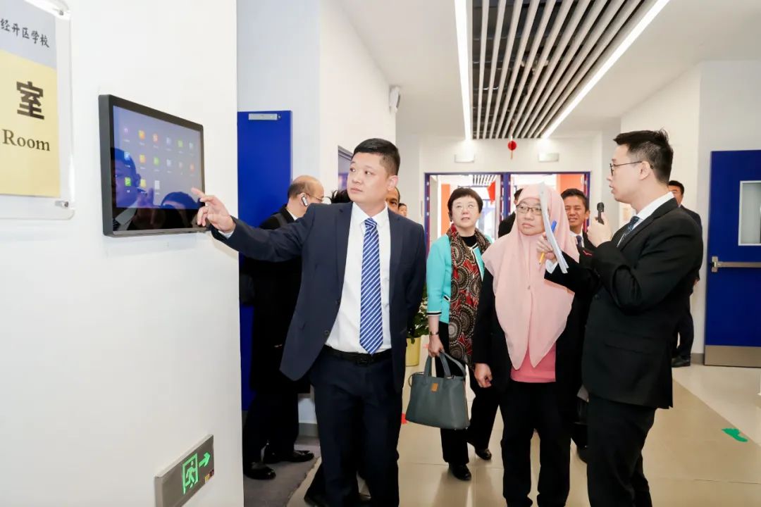 隨后,為了更全面的了解智慧教室等數字教育實踐場景中的軟硬件情況,東盟教育官員一行赴位于北京經濟技術開發區的視源股份北京產業園參觀調研。