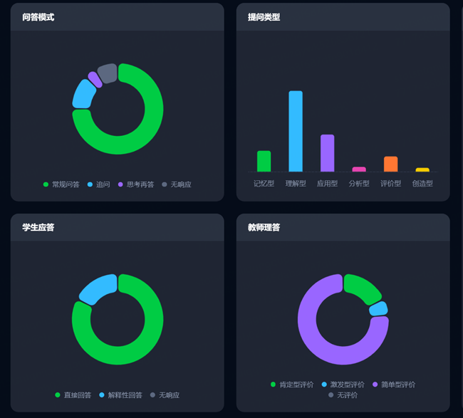 教研室宋主任表示,這是西吉縣首次通過AI技術(shù)在線支持教研協(xié)作和交流,本次活動AI突出表現(xiàn)了信息技術(shù)在教研中的幾個優(yōu)勢影響。其一是培養(yǎng)教師的數(shù)據(jù)意識,通過數(shù)據(jù)和圖表的形式可以關(guān)注到之前課堂中未被量化的指標(biāo),比如:講授時長、講授語速、問答次數(shù)、師生互動次數(shù)、問答及互動類型等,讓老師的教學(xué)質(zhì)量提升更有針對性;其二是借助高效的制度評價模式,能在短期內(nèi)更有針對性地為每一個教師自身素養(yǎng)量身打造對應(yīng)的提升思路,讓校本教研、區(qū)域智慧教研更高效、更智慧;其三是希沃AI建議中會包含知識點查看、新課標(biāo)建議,為課堂效果提升解讀思路。