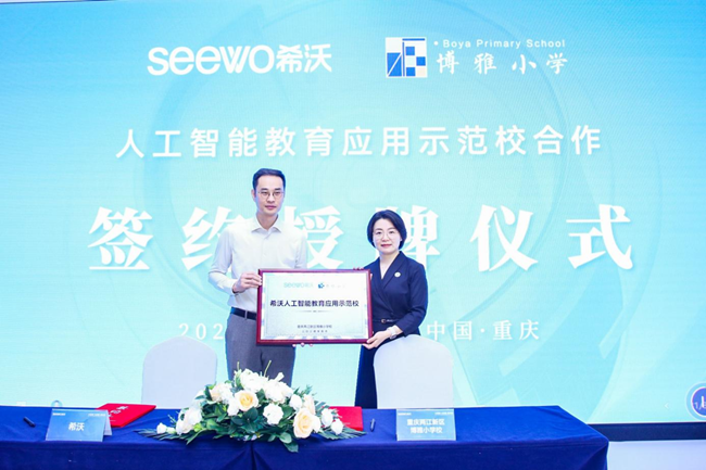 近日,在第83屆中國教育裝備展示會現(xiàn)場,希沃與重慶兩江新區(qū)博雅小學(xué)校(下稱:博雅小學(xué)校)進(jìn)行了人工智能教育應(yīng)用示范校合作簽約授牌儀式,視源股份未來教育集團(tuán)商用顯示事業(yè)部總經(jīng)理黃柏林、博雅小學(xué)校副校長林曉宇出席活動,開啟校企合作的新篇章。