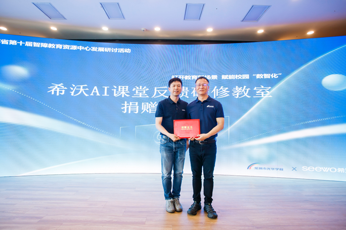 在本次以“打開教育新場景 賦能校園「數智化」”為主題的研討活動上,希沃向光華學校捐贈了希沃AI課堂反饋研修教室,通過人工智能技術進一步助力學校的智障教育支持保障體系建設。同時雙方攜手共創特殊教育產學研合作基地,賦能學校以更智能、更便捷的方式提升教師信息技術與課程整合應用能力,不斷深化對教育教學改革的規律性認識,探索培智學校適切的課堂教學模式。