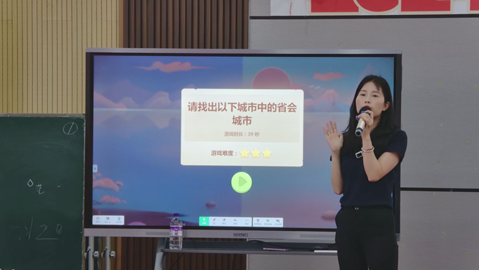 趙陽陽老師分享了如何利用希沃白板軟件制作交互式課件,包括應用蒙層技術、思維導圖等進階功能,以增強教學內容的表現力和互動性。通過希沃白板中多種課堂活動模板,如分組競爭、知識配對等,演示了如何通過游戲化學習提高學生的參與度和學習效果。除了分享以外,趙陽陽老師還通過現場演示信息化教學工具實操,讓老師們直觀了解希沃白板在教學中的應用方法及操作流程。