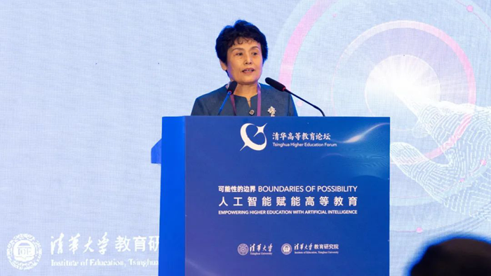 中國高等教育學會副會長林蕙青在致辭中表示,作為引領科技革命和產業變革的戰略性技術,人工智能正重塑教育形態、教學模式和科研范式,推動教育事業邁向高質量發展的新高度。