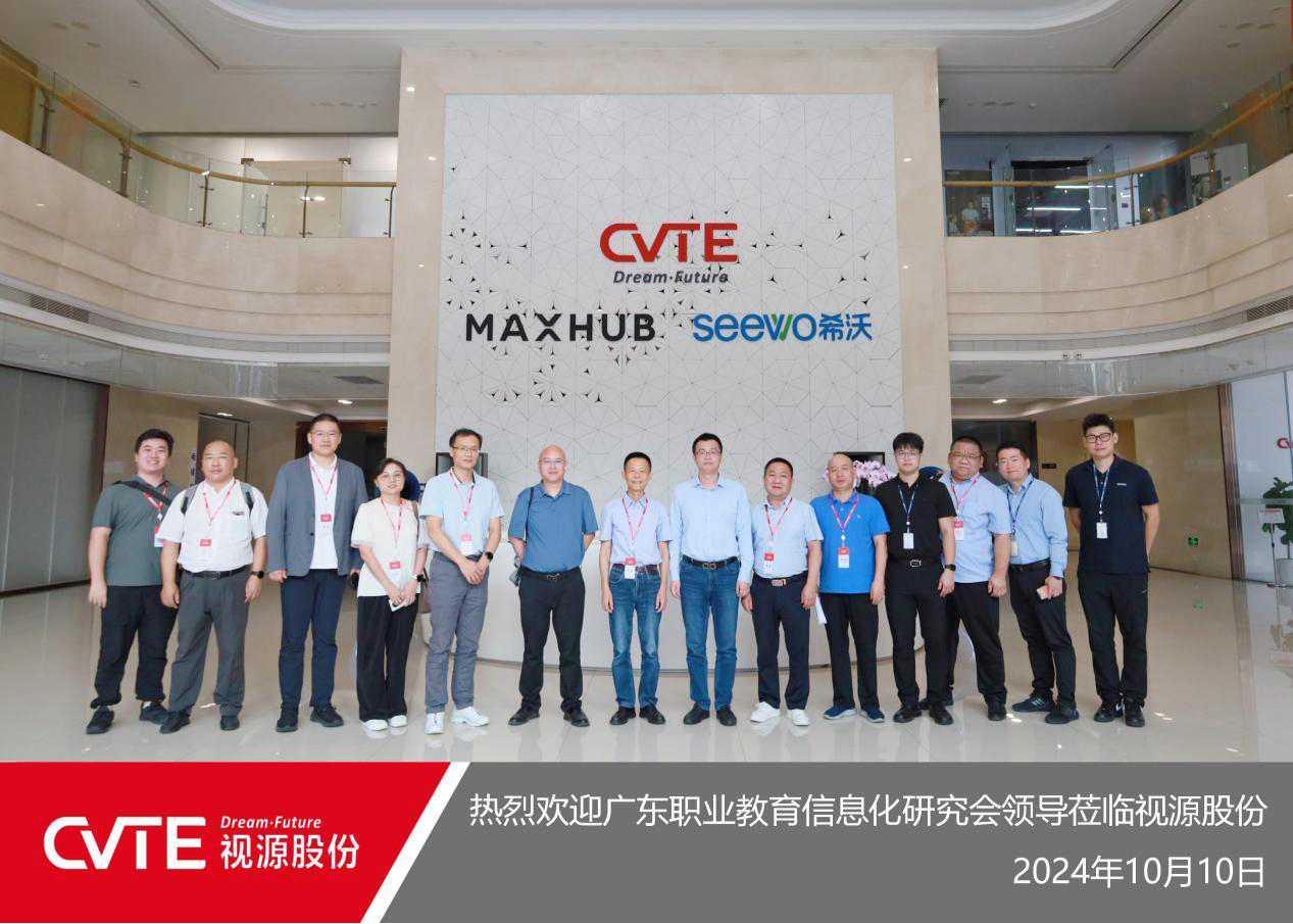 10月10日,華南理工大學副首席信息官、廣東職業教育信息化研究會首席專家陸以勤,廣東省教育廳事務中心信息數據部主任楊生華、常務副會長劉兆風、秘書長王軍、常務理事郭浩杰、副秘書長嚴正淮等一行領導蒞臨視源股份(希沃)CVTE第四產業園參觀交流,就產教融合、智慧教室、高職教數字化發展等關鍵議題進行深度研討。