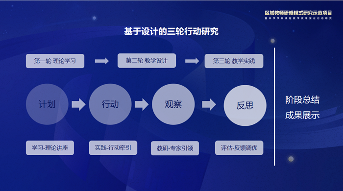 示范項(xiàng)目圍繞“教育教學(xué)前沿”“學(xué)科教學(xué)設(shè)計(jì)及實(shí)施”及“信息技術(shù)與教學(xué)融合”三大方向提升教師專業(yè)能力。2024年10月至2025年5月,分階段實(shí)施三大目標(biāo):新課標(biāo)、新理念的學(xué)習(xí)與應(yīng)用,新技術(shù)、新模式的學(xué)習(xí)與應(yīng)用,以及骨干隊(duì)伍的培育與優(yōu)秀成果的生成。
