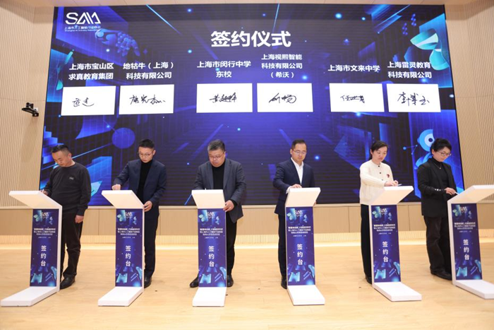 會(huì)上,12家人工智能企業(yè)與教育場(chǎng)景單位達(dá)成供需簽約,其中上海視熙智能科技有限公司作為人工智能企業(yè)與教育場(chǎng)景單位上海市閔行中學(xué)東校達(dá)成供需簽約。