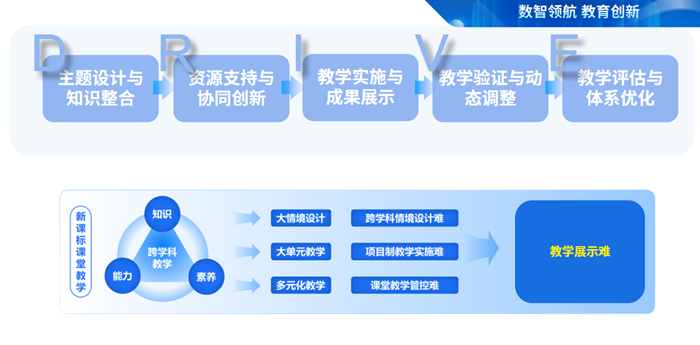 方婭提出技術支持下的跨學科驅動模式-“DRIVE”模式。技術將在“主題設計與知識整合”“資源支持與協同創新”“教學實施與成果展示”“教學驗證與動態調整”“教學評估與體系優化”上進行全方位賦能。