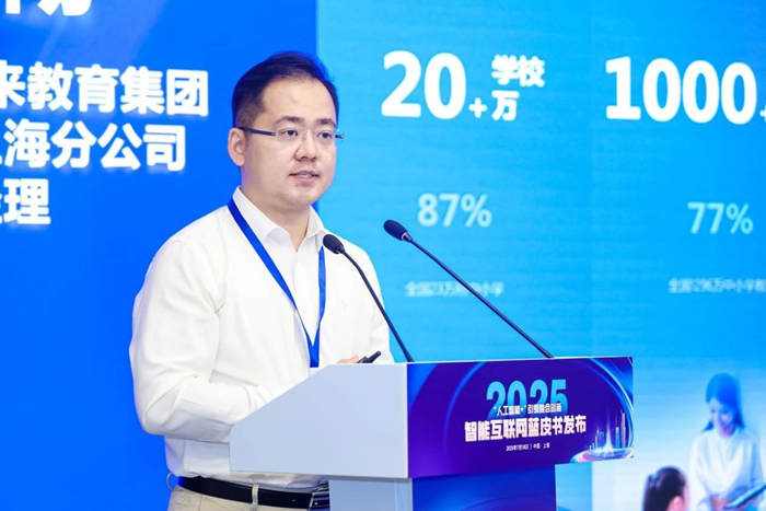 7月18日,由人民網研究院組織編寫的智能互聯網藍皮書《中國智能互聯網發展報告(2025)》在上海正式發布。希沃作為人工智能教育案例代表,連續第三年入選藍皮書報告,發布首個《人工智能系統支持下的教學質量常模構建研究》,介紹基于希沃教學大模型構建的教學質量常模框架,推動教學活動更加規范化、科學化。發布會上,視源股份未來教育集團(希沃)上海分公司總經理劉暢分享“AI+教育”的應用。