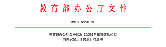教育部教技廳 2018 年 1 號紅頭文件《2018 年教育信息化和網絡安全工作要點》以及教育部副部長杜占元在 2017