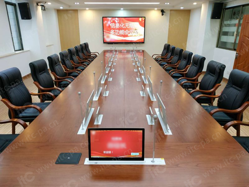 itc嚴(yán)格按照檢查院的會議設(shè)計要求,結(jié)合會議室的建筑結(jié)構(gòu)及相關(guān)設(shè)計標(biāo)準(zhǔn)進(jìn)行設(shè)計,選用了一體式雙屏的無紙化會議終端。