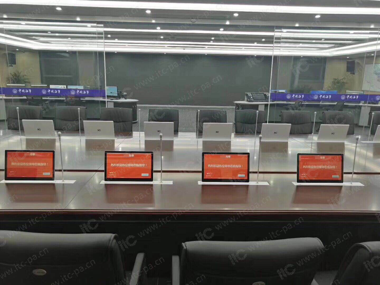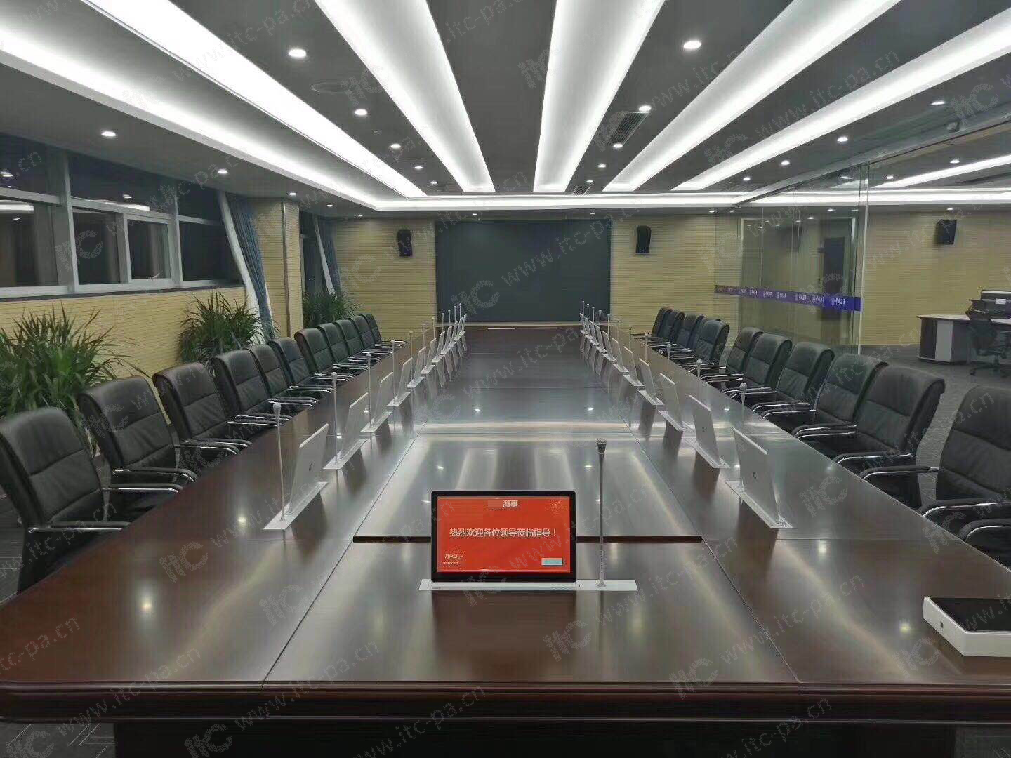 會議室需設計成用于會議、報告等多種用途的綜合場所,需要建設一套集日常會議、視頻會議、多功能會議為一體的會議室,確保會議室設計理念先進、系統穩定、功能完善、指揮高效。為此itc特為江蘇某海事大樓應急指揮中心建設了一套集無紙化系統、中控系統、擴聲系統的整體解決方案。