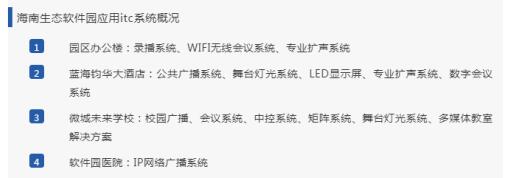 【itc無紙化、WIFI無線、數字會議、舞臺燈光、擴聲案例】海南生態軟件園