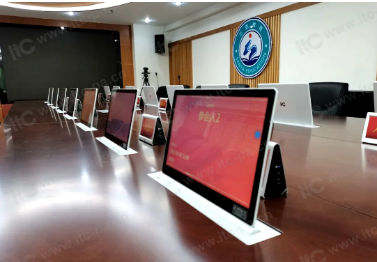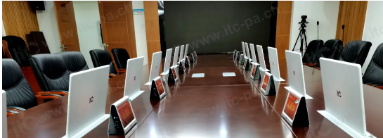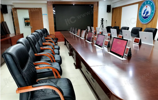 為貫徹低碳環(huán)保理念、落實無紙化辦公、提高會議效率以及節(jié)約會議支出等,三亞市教育局進行會議室智慧升級建設。itc特此設計了集無紙化會議系統(tǒng)、專業(yè)擴聲系統(tǒng)、電子桌牌等一體化解決方案,主要用于各種教育會議,為參會人員以及從事教育活動人員使用,提高會議效率。
