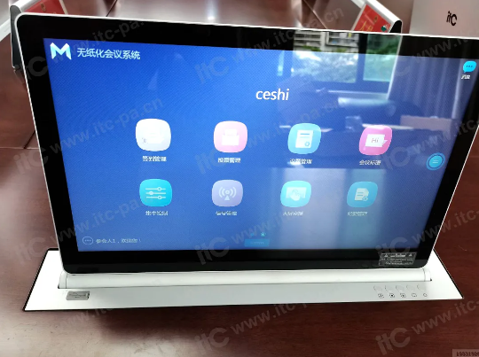 綜合教育局的實際情況,itc根據用戶需求及室內布局,在會議室每個座位設計一臺觸控無紙化智能桌面與終端主機相結合的無紙化會議系統(tǒng),把會前、會中、會后的全部會議功能融入到系統(tǒng)當中,增加會議簽到、投票、信息交流、會議服務、人員管理、會議管理等應用功能,實現(xiàn)了整個會議的智能管控。