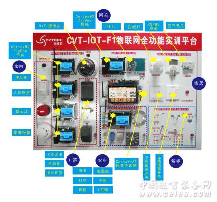 產品詳細介紹“創維特智能家居實訓臺”詳細介紹 本系統以ARM智能網關機為核心,構建智能化家居管理和遠程控制體系。共分為感知層、網絡層和應用層三層架構,以互聯網將ARM智能網關機和各種傳感器感以及報警終端以及電器控制終端有機連接。通過ARM網關機、PC機、手持智能網關對所有設備實施操作管理,提供家居控制、家居監測、收聽音樂、安防系統、告警聯動、智能識別等應用。 智能家居系統涵蓋六大子系統:家居控制( 燈光控制/智能插座 /智能窗簾/智能遙控)、 家居監測(溫濕度/光照度/智能電表)、收聽音樂(音樂系統/無線收音)、安防系統(門禁系統/監控系統)、告警聯動(告警控制/聯動控制)、智能識別(指紋識別/語音識別)。 本實驗臺為物聯網智能家居作為學習實訓對象。集成了物聯網基礎學習基礎區,智能家居安防實訓區,環境監控實訓區,電源管理實訓區與擴展功能實訓區等。 (1)基礎學習實訓區 包括一個Cortex-A8網關(支持升級為A9),一個基于Cortex-M3的節點,RFID擴展板(支持低頻125K,高頻13.56M,超高頻900M等)。 (2)智能家居安防實訓區 包括四個基于Cortex-M3的節點(2530方案),漫反射光電開關、人體感應、報警燈、煙霧傳感器、攝像頭(帶云臺),RFID門禁讀卡器,電磁鎖,指紋識別單元。 (3)智能家居環境監控區 包括基于Cortex-M3的節點(2530方案),指示燈,光照,振動,溫濕度,雨滴,風扇,可調燈光等監測控制對象。 (4)智能家居電源管理區 包括智能調光燈,智能調光(無線2530方案)觸摸開關;(無線)智能電表,無線智能插座(86式,無線2530方案),空氣開關等模塊。 (5)智能家居擴展功能區 包括一個基于Cortex-M3的節點(2530方案),CAN接口,485接口一個,擴展I/O口一個,232串口一個,繼電器擴展接口,及擴展電源接口若干。 |