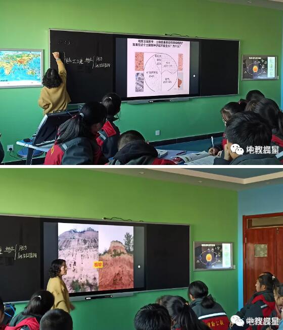 張老師帶領446班的孩子們來地理教室學習《土壤的形成》。