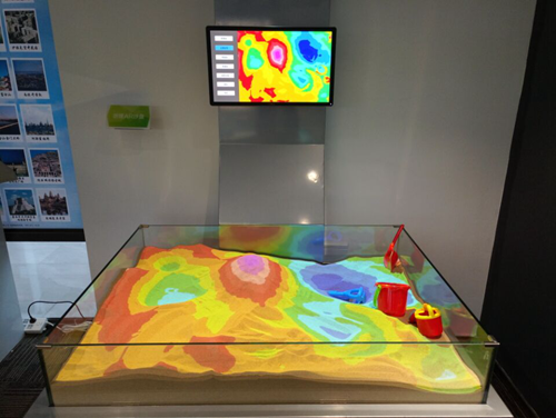 地理AR沙盤(pán)是一款適用于初高中地理教學(xué)的數(shù)字化投影沙盤(pán)。采用AR增強(qiáng)現(xiàn)實(shí)、傳感等技術(shù),即時(shí)識(shí)別互動(dòng)沙盤(pán)形態(tài),依據(jù)沙盤(pán)變化,將不同的地勢(shì)地貌形態(tài)通過(guò)虛擬投影真實(shí)展示。