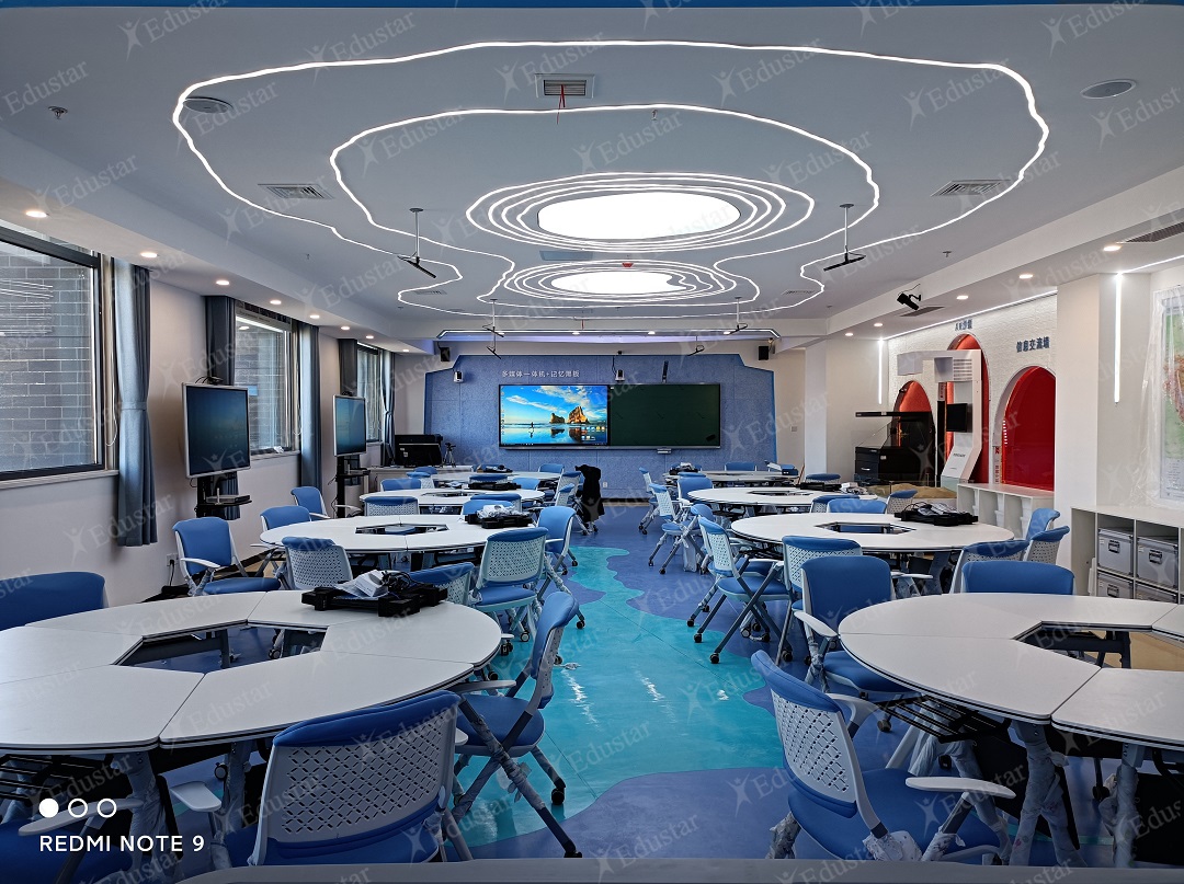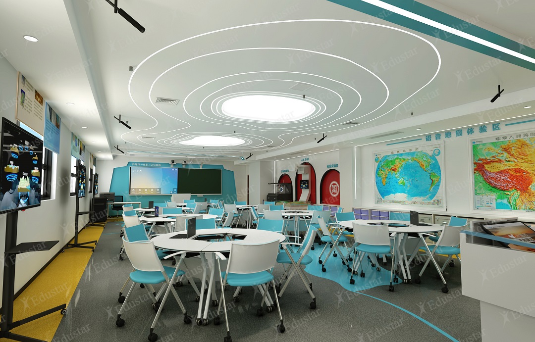 這間地理實訓室以高端實驗室的空間感作為環境設計原則,通過時尚明亮的設計風格,融合多種教學功能,結合本地特色,以抽象的藝術處理體現本地人文風情和地域特點,建設出一個具有地理特色、設施領先、環境優美的高水準高校地理教育教法實訓室。