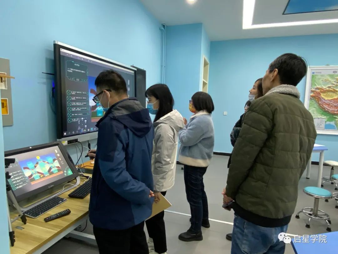 沙河二中地理教室主要設備有數字星球和寰宇地理VR教學系統,培訓學習結束之后老師們自己動手體驗,熟悉設備的操作以及涵蓋的課程資源。在培訓過程中,二中的化學老師意外體驗到了寰宇地理VR教學系統,覺得用VR技術呈現教學知識的方式非常好,并且想用VR設備參加比賽,我們的培訓講師也非常貼心地為他推薦了啟星VR移動課堂中的化學VR資源。