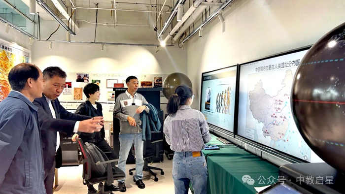 由于參與調(diào)研的領(lǐng)導(dǎo)對于中教啟星地理領(lǐng)域的產(chǎn)品已經(jīng)比較熟悉,石文寧老師就重點(diǎn)介紹了公司在歷史學(xué)科方面的解決方案。利用全息技術(shù)、AR/VR技術(shù)及數(shù)字化手段,中教啟星開發(fā)了一系列歷史教學(xué)資源,如歷史交互教學(xué)系統(tǒng)、文明的足跡VR教學(xué)系統(tǒng)、良渚遺址VR探究系統(tǒng)等,為老師減輕了備課授課負(fù)擔(dān),為學(xué)生提供了沉浸式的學(xué)習(xí)體驗,極大地豐富了歷史教學(xué)的內(nèi)容和形式。