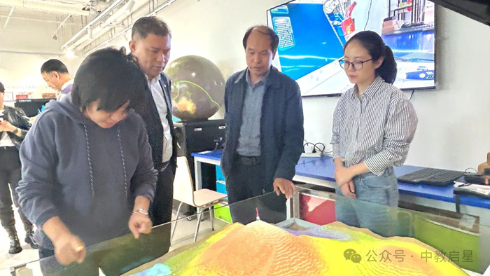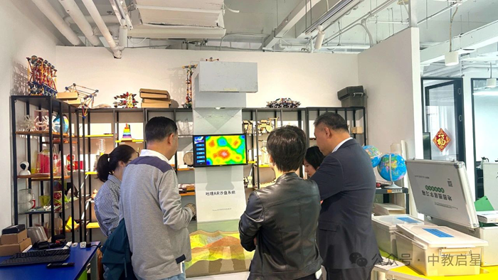 隨后,中教啟星教研總監(jiān)王秋平向來訪領(lǐng)導(dǎo)介紹了公司的基本情況和主營業(yè)務(wù),尤其是地理領(lǐng)域的創(chuàng)新引領(lǐng)、新建校業(yè)務(wù)的項目案例和中職VR創(chuàng)新解決方案。中教啟星致力于自研學(xué)科地理、歷史、數(shù)學(xué)、VR、勞動教育等領(lǐng)域教育裝備的研發(fā)、生產(chǎn)和銷售,特別是在數(shù)字化和虛擬現(xiàn)實技術(shù)領(lǐng)域,公司擁有一系列創(chuàng)新產(chǎn)品和解決方案,廣泛應(yīng)用于基礎(chǔ)教育領(lǐng)域、校外素質(zhì)教育及高等教育領(lǐng)域。