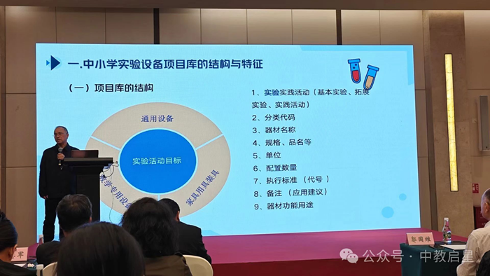 其中,南京市教育技術(shù)裝備中心鄧中材主任分享的題目為《“項(xiàng)目庫”牽引實(shí)驗(yàn)設(shè)備更新優(yōu)質(zhì)高效》。鄧主任以南京市裝備的實(shí)際案例,向大家介紹了中小學(xué)實(shí)驗(yàn)設(shè)備項(xiàng)目庫的結(jié)構(gòu)與特征、如何集約式推進(jìn)項(xiàng)目的落地、項(xiàng)目后評價及項(xiàng)目庫優(yōu)化。