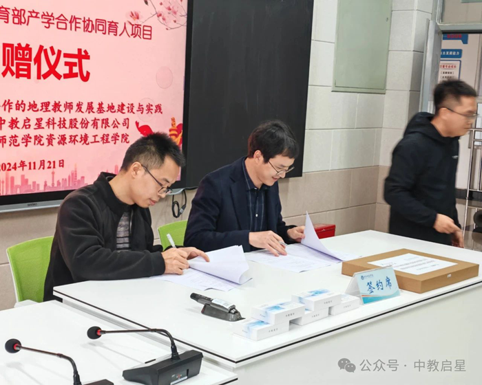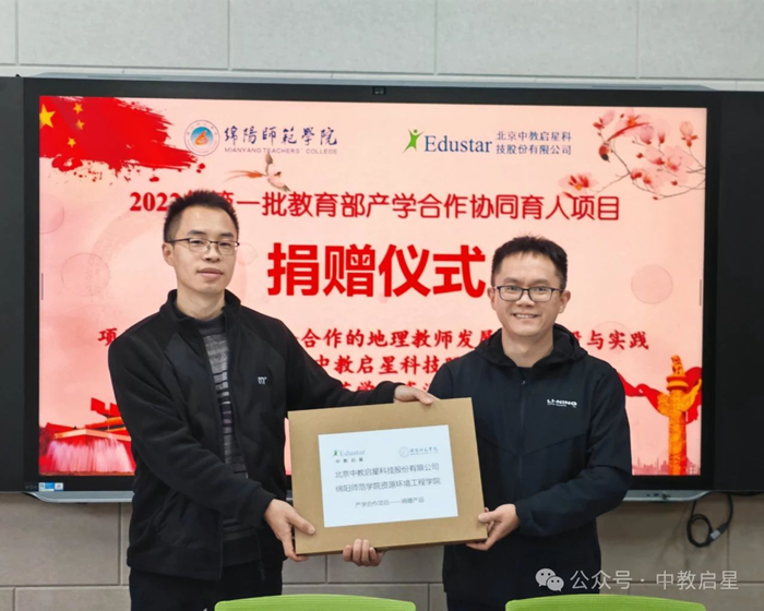 2024年11月21日下午,綿陽師范學(xué)院與北京中教啟星科技股份有限公司聯(lián)合舉辦教育部產(chǎn)學(xué)合作協(xié)同育人項(xiàng)目捐贈(zèng)培訓(xùn)活動(dòng)。北京中教啟星科技股份有限公司的川渝負(fù)責(zé)人黎江川和技術(shù)負(fù)責(zé)人羅振天代表公司參與本次活動(dòng),資源環(huán)境工程學(xué)院的黨委書記聶東、院長陳浩、副院長林孝先、副院長黃天志以及多位教師代表出席捐贈(zèng)儀式。