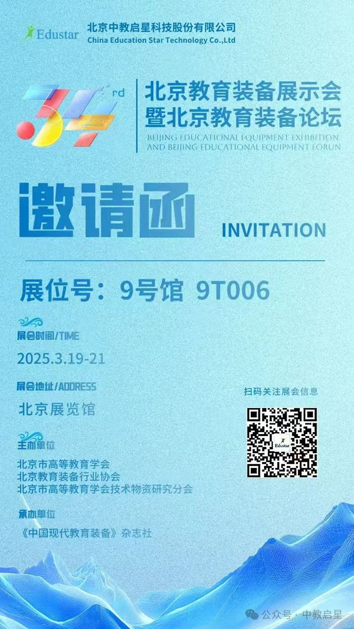 冬去春來,乍暖還寒,第34屆北京教育裝備展示會暨北京教育裝備論壇將于3.19—21日在北京展覽館召開。在這個春光明媚的季節里,中教啟星誠摯邀請您蒞臨,一同見證教育裝備的創新與未來。