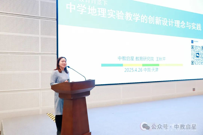 中教啟星教育研究院副院長王秋平,代表公司分享《科學教育背景下中學地理實驗教學的創新設計理念與實踐》,重點從地理實驗教學的角度,分享了中教啟星的實踐經驗和產品解決方案。