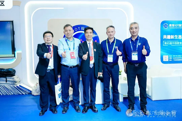 中國教育裝備行業協會專家委員會主任委員王富主任與相關領導到我司展位參觀交流,并合影留念。