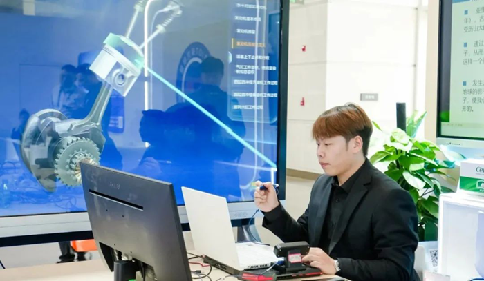 中教啟星通過裸眼XR便攜終端與裸眼大屏相結合的方案,提供汽車維修、智能制造、軌道交通、醫療護理、建筑等眾多專業的虛擬仿真教學資源,助力職業教育的高質量發展和數字化轉型。