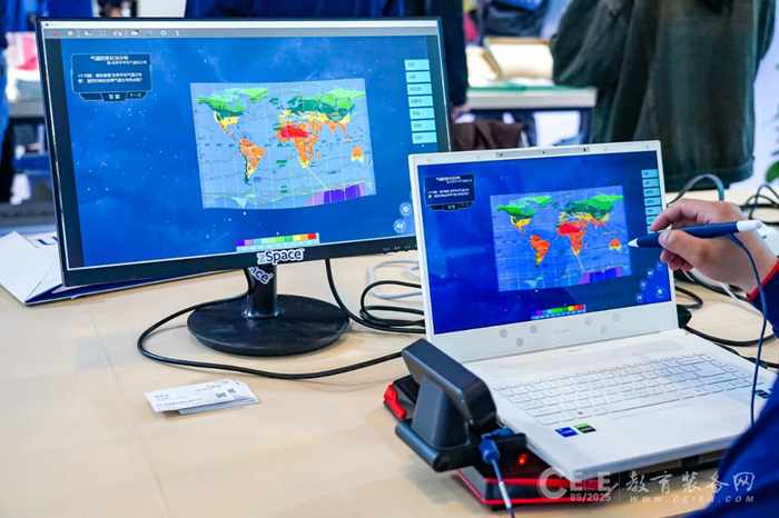 此次展示的數字化地理教室中,數字星球系統融合了球幕投影、多媒體交互、數字化資源等多種技術,將地球、宇宙等宏觀地理知識以動態、立體的形式呈現在球形屏幕上。教師能夠通過系統,全方位、多角度展示地球的地理現象、時空演化、大氣環流等知識,打破了傳統平面教學的局限,以極具直觀立體的視覺效果,激發學生對地理知識探索的熱情,助力他們更深入地理解宏觀地理現象和原理。