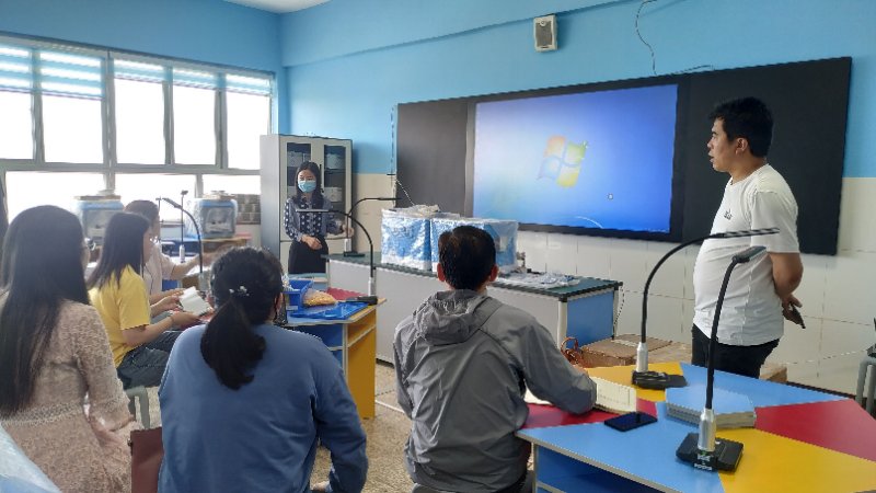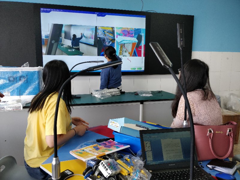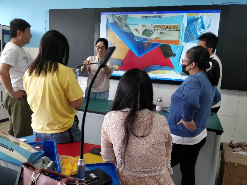 老師們聽完吉星團隊的培訓后,不斷地嘗試和使用設備后,老師們互相討論互動,深刻體會到創客課堂系統帶來的互動效果,現場就用創客系統授課,即學即用!