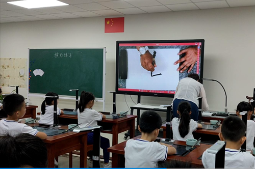 這堂別具特色的書法課,將古典書法與現代科技有機結合起來。比起傳統書法課堂的單向教學,運用吉星智慧書法課堂的教學方式做到了“能看、能評”,簡單高效,打造了一種能夠提高教師書法教學效率的全新模式,語文老師也可以上書法課。