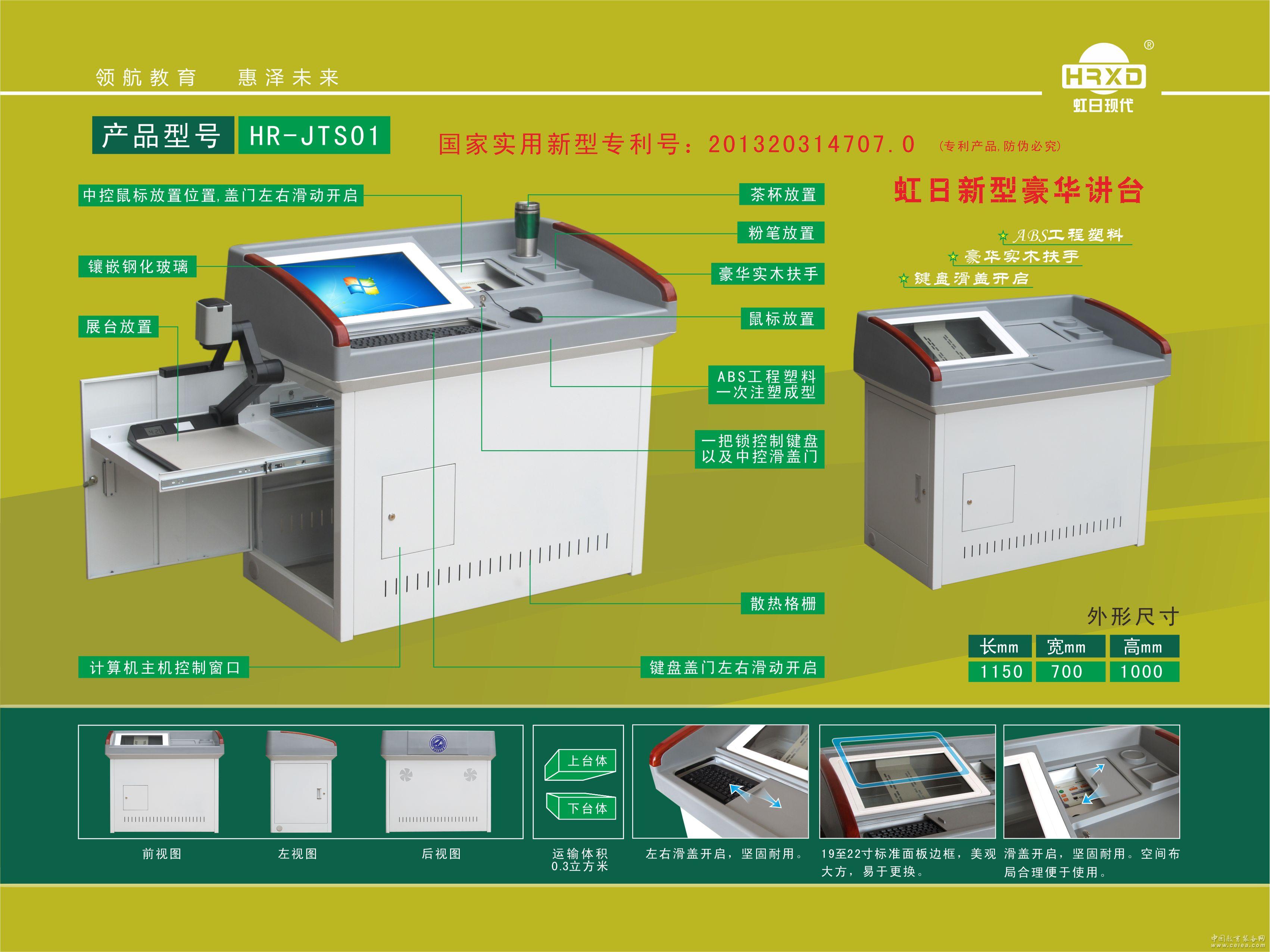 2、 人性化設計:中控及鍵盤鼠標開啟采用左右平推滑蓋設計,不使用導軌降低了故障率;鍵盤左右平推滑蓋設計,使教師可緊貼講臺減少了與顯示器之間的視距,輕松看清圖像,降低了教師視覺疲勞度;臺面周邊R20圈弧設計以最大限度減少對師生的傷害,臺面下端傾角收縮設計,更安全、更美觀;桌面功能區間布局合理,設計精巧,教師輕松授課;柜體前后開門,使施工、維護作業更加便捷。