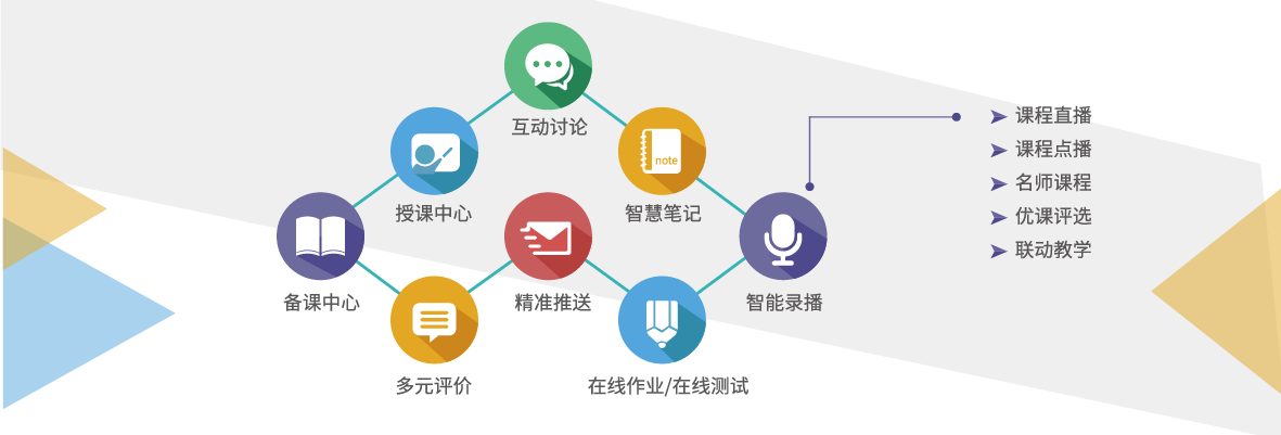 資源豐富,高效備課:課程針對職校、高校、K12等各級學校需求開發,涵蓋120多個專業、900余門課程的海量資源及素材,快速整合生成課件,發布預習任務,獲得學情反饋。 錄課直播,輕松形象:人臉識別考勤,一鍵隨堂錄課,智能手寫、擦除、縮放,快速切換板書課件,講課更輕松;自帶繪圖工具,視頻縮放細節標記,VR技術加持,課程形象直觀。 在線答疑,提升教學:線上作業收發及答疑,回看課程,教學效果數據化,方便教學反思。