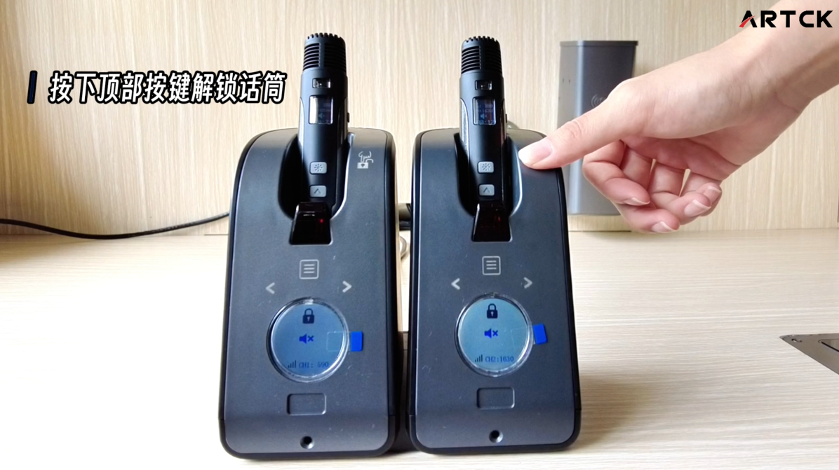 2. 按下頂部按鍵解鎖話筒