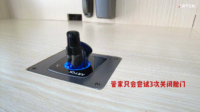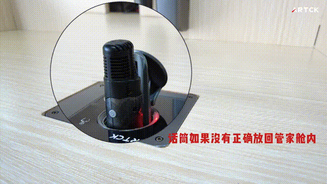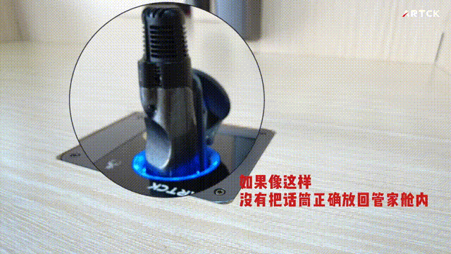 當無線話筒使用完畢,正確放回管家艙內,話筒會自動下降收回艙內,艙門順利關閉。當無線話筒未被正確放置時,管家艙門周圍的燈環,會閃爍警報紅燈;并會持續不斷,反復嘗試開合艙門,直到話筒被正確放置,艙門才會順利關上。
