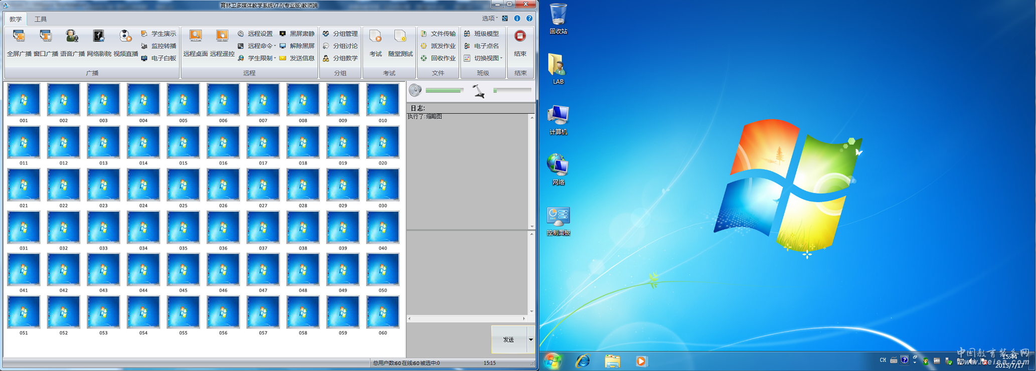 產品詳細介紹 (一)教師端 功能類別 功能名稱 功能概述 網絡通信 通信方式 通過頻道號進行通信,教師端和學生端的頻道號保持一致即可實現學生端的自動登錄,同時為了滿足實際教學的需要,教師端支持合班與分班教學。 廣播教學 全屏廣播 向學生端廣播教師端的聲音或圖像,教師端計算機桌面圖像在學生端計算機屏幕上全屏顯示。 窗口廣播 向學生端廣播教師端的聲音或圖像,教師端計算機桌面圖像在學生端計算機屏幕上以窗口的方式顯示。 語音廣播 廣播老師機計算機及麥克風的聲音給學生機,以實現實時的語音教學。 學生演示 老師指定某些學生在計算機上演示某些操作給其他學生,如果在演示過程中有錯誤的操作,老師可以及時在教師機幫助糾正,如指定某學生向其他學生示范如何安裝office辦公軟件等。 電子白板 即黑板的功能,老師機打開電子白板,使用教學使用的教鞭、直線、曲線、字體等等工具,供老師隨時在白板上寫入,實時的廣播給學生機,方便老師教學。 教學管理 班級模型 針對不同的上課班級,進行學生ICON的位置排列及別名的命名存為該班級的模型,等后續老師上課時,直接加載該班級模型即可實現快速教學。 電子點名 上課時,老師檢查學生的出勤狀況,電子點名后,可以及時生成該堂課的出勤狀況。 修改學生端頻道 遠程單一或批量修改學生端的頻道數。 斷線鎖屏 當老師在教學的過程中,學生端出現斷線(網線被拔掉、IP被修改等現象)時會自動鎖定學生端計算機的屏幕。 同步用戶操作系統時間 同步教師端計算機與學生端計算機的操作系統時間。 視圖切換 切換學生ICON在教師端上的排列方式,縮略圖排列、詳細列表排列、大圖標排列、小圖標排列。 黑屏肅靜 鎖定學生端計算機的屏幕。 取消黑屏肅靜 解鎖學生端計算機的屏幕。 視頻教學 網絡影院 老師可以把一些對教學有幫助的視音頻文件通過網絡影院的功能,播放給的學生觀看學習。 視頻直播 老師機計算機可以外接攝像頭、DVD影碟機等外部的設備播放相關的教學材料。 分組教學 分組管理 對所有的學生端進行分組,并且指定分組中的成員。 分組討論 老師設定相關的話題或情境,指定相關的分組進行討論。 分組教學 每組指定一名組長,讓該組組長去對組中的成員進行教學指導,老師可以實時地監看組長的教學進程。 文件操作 文件傳輸 發送文件或文件夾給在線的學生。 派發作業 老師向學生機派發作業。 回收作業 老師回收學生的作業。 常用工具 浮動工具條 浮動工具條放置常用的教學功能,在教師端操作界面最小化的時候,方便老師授課選擇。 屏幕錄制 老師開啟屏幕錄制的功能,把老師的授課內容全程或部分錄制下來,以備課后的溫習。 遠程管理 遠程監看 每個學生機的畫面實時地顯示在老師機的屏幕上,老師可以及時地了解學生正在進行的學習進度。 遠程控制 當學生使用計算機在完成老師布置的任務時,遇到瓶頸時,可以請老師進行協助,此時老師不需要走到學生的計算機處,僅在自己的計算機上就可以對學生進行遠端指導,遠程遙控學生的計算機。 遠程命令 老師在授課的過程中,可以按需及時打開學生機計算機的小工具(如計算器、小畫家等)供教學使用。 遠程設置 遠程設置設定學生端計算機的音頻、分辨率、電源參數。 遠端開機 在教師端遠程開啟學生端的計算機。 遠程關機 在教師端遠程關閉學生端的計算機。 遠程重新啟動 在教師端遠程重新啟動學生端的計算機。 遠程登錄Windows 在教師端遠程幫助學生機登錄Windows操作系統。 遠程注銷Windows 在教師端遠程幫助學生機注銷Windows操作系統。 遠程關閉應用程序 在教師端遠程關閉與此時教學活動無關的學生機應用程序。 遠程修改學生端密碼 在教師端遠程修改學生端程序的密碼。 上網控制 控制學生端上網,提供了網址過濾和進程過濾,可以很好地控制學生通過IE或是通訊等程序上網,可以通過黑、白名單的方式去智能化地控制學生機的上網范圍,完美地實現對上網控制與教學的協調。 U盤限制 限制學生機對于讀寫USB存儲設備的啟用與禁用,可以有效地防止學生攜帶游戲到電教室中。 光驅限制 限制學生機的物理光驅和虛擬光驅的使用,提供啟用與禁用兩個選項供老師選擇,可以很好地防止通過光驅拷貝數據到電教室。 禁止發言 老師可以根據教學時間的靈活地啟用和禁用發言的功能,讓學生在適當的時間進行發言。 禁止舉手 防止學生調皮胡亂舉手,老師可以在師生互動時實時地啟用舉手,讓學生舉手,在其他時候禁用舉手。 遠程卸載 在產品更新換代或重新部署時,老師可以在教師端實現遠程批量卸載學生端,無需到學生機處去逐臺卸載學生端程序。 禁止提交文件 禁止學生在不恰當的時候提交文件,只有老師取消禁止后,學生才能提交文件,有效地維護了提交文件的秩序。 遠程資訊 上網記錄 記錄學生端使用IE等瀏覽器或是可以聯網的軟件所訪問的網頁信息、訪問計算機信息,清楚地統計和智能化地過濾重復的記錄,方便老師了解學生的學習內容。 資產管理 對學生機的軟件、硬件資產進行實時檢測,當有軟、硬件資產出現變動時,會自動通知老師,并指出具體是哪一個資產出現變動,方便老師對機房進行資產的管理。 遠程信息 幫助老師了解和分析學生機的最新操作系統信息(當前所使用的操作系統、CPU