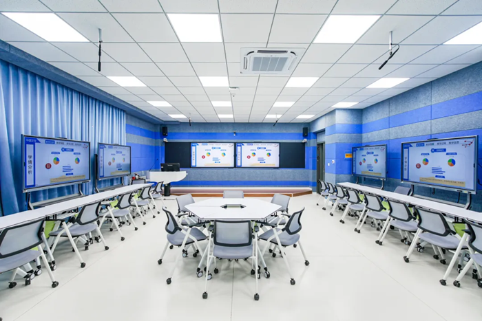 基于東營職業學院師生開展分組教學、主題研討、協作共創等教學活動需求,海信商用顯示還助力其打造10余間研討型智慧教室。